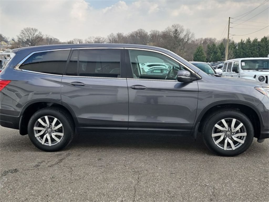 Balance of Factory Warranty, AWD, 18" Machine-Finished Alloy Wheels, 3rd row seats: split-bench, 4-Wheel Disc Brakes, 4.33 Axle Ratio, 7 Speakers, A/V remote: CabinControl, ABS brakes, Air Conditioning, Alloy wheels, AM/FM radio: SiriusXM, Apple CarPlay/Android Auto, Auto High-beam Headlights, Auto-dimming Rear-View mirror, Automatic temperature control, Blind Spot Information (BSI) System warning, Brake assist, Bumpers: body-color, Delay-off headlights, Driver door bin, Driver vanity mirror, Dual front impact airbags, Dual front side impact airbags, Electronic Stability Control, Emergency communication system: HondaLink Assist, Exterior Parking Camera Rear, Forward collision: Collision Mitigation Braking System (CMBS) + FCW mitigation, Four wheel independent suspension, Front anti-roll bar, Front Bucket Seats, Front Center Armrest, Front dual zone A/C, Front fog lights, Front reading lights, Fully automatic headlights, Garage door transmitter: HomeLink, Heated door mirrors, Heated Front Bucket Seats, Heated front seats, Illuminated entry, Lane departure: Lane Keeping Assist System (LKAS) active, Leather Seat Trim, Low tire pressure warning, Memory seat, Occupant sensing airbag, Outside temperature display, Overhead airbag, Overhead console, Panic alarm, Passenger door bin, Passenger vanity mirror, Power door mirrors, Power driver seat, Power Liftgate, Power moonroof, Power passenger seat, Power steering, Power windows, Radio data system, Radio: 215-Watt Audio System, Rear air conditioning, Rear anti-roll bar, Rear reading lights, Rear seat center armrest, Rear window defroster, Rear window wiper, Reclining 3rd row seat, Remote keyless entry, Security system, Speed control, Speed-sensing steering, Speed-Sensitive Wipers, Split folding rear seat, Spoiler, Steering wheel mounted audio controls, Tachometer, Telescoping steering wheel, Tilt steering wheel, Traction control, Trip computer, Turn signal indicator mirrors, and Variably intermittent wipers.