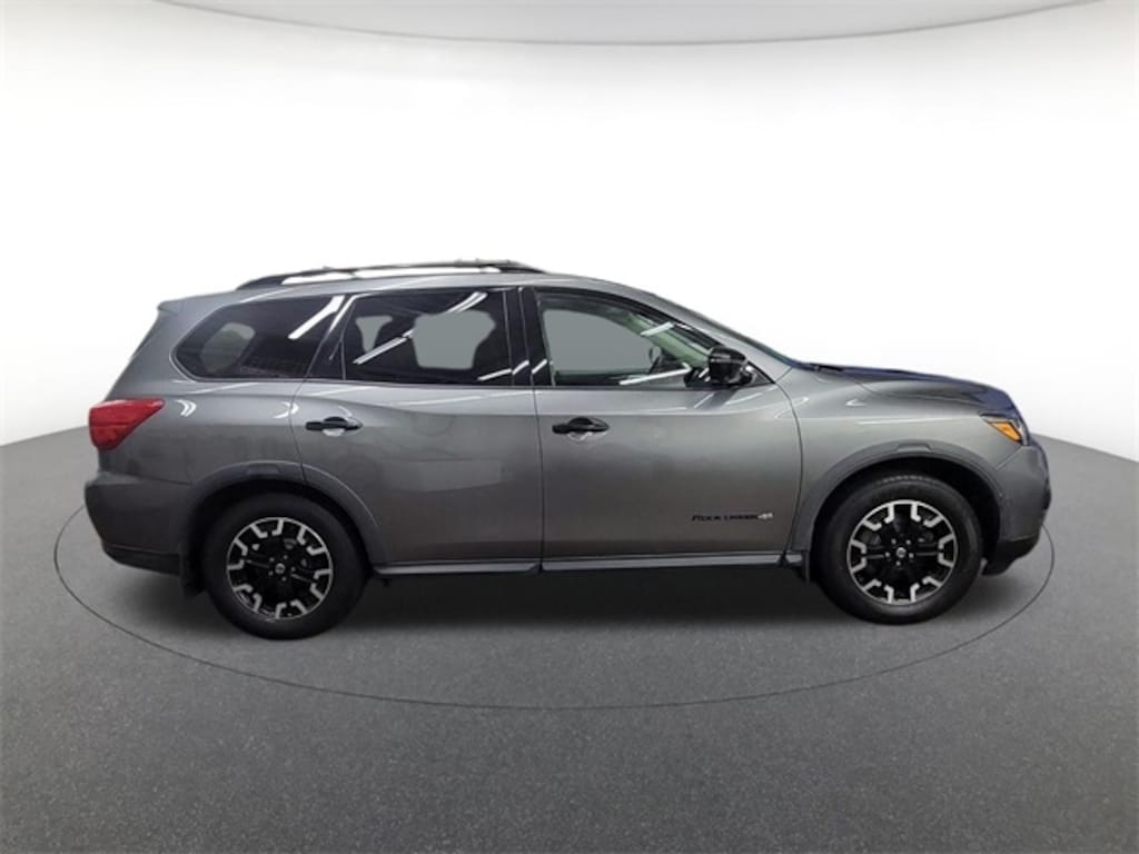 Rock Creek Edition (Black Door Handles, Black License Plate Finisher, Black Mesh Grille & V-Motion, Black Molded Over Fenders, Black Outside Rearview Mirrors, Black Roof Rails, Front Aesthetic Silver Skid Plate, Premium Metallic Interior Trim, Splash Guards, Trailer Tow Hitch & Harness, Unique Front Door Badging, and Unique Rock Creek Edition Seating Surfaces), SL Rock Creek Edition Premium Package (Bose Premium Audio System and Power Panoramic Moonroof), 3rd row seats: bench, 4-Wheel Disc Brakes, 6 Speakers, ABS brakes, Air Conditioning, Alloy wheels, AM/FM radio: SiriusXM, AM/FM/CD Audio System, Auto-dimming Rear-View mirror, Automatic temperature control, Blind Spot Warning, Brake assist, CD player, Delay-off headlights, Dual front impact airbags, Dual front side impact airbags, Electronic Stability Control, Emergency communication system: NissanConnect Services, Exterior Parking Camera Rear, Four wheel independent suspension, Front Bucket Seats, Front Center Armrest, Front dual zone A/C, Front fog lights, Fully automatic headlights, Heated door mirrors, Heated Front Bucket Seats, Heated front seats, Heated rear seats, Leather Seating Surfaces, Memory seat, Navigation System, NissanConnect w/Navigation & Services, Panic alarm, Power door mirrors, Power driver seat, Power Liftgate, Power passenger seat, Radio data system, Rear air conditioning, Rear Parking Sensors, Rear window defroster, Rear window wiper, Reclining 3rd row seat, Remote keyless entry, Security system, SiriusXM Traffic, Speed control, Speed-sensing steering, Speed-Sensitive Wipers, Split folding rear seat, Steering wheel mounted audio controls, Tachometer, Telescoping steering wheel, Tilt steering wheel, Traction control, Trip computer, Turn signal indicator mirrors, Variably intermittent wipers, Wheels:
